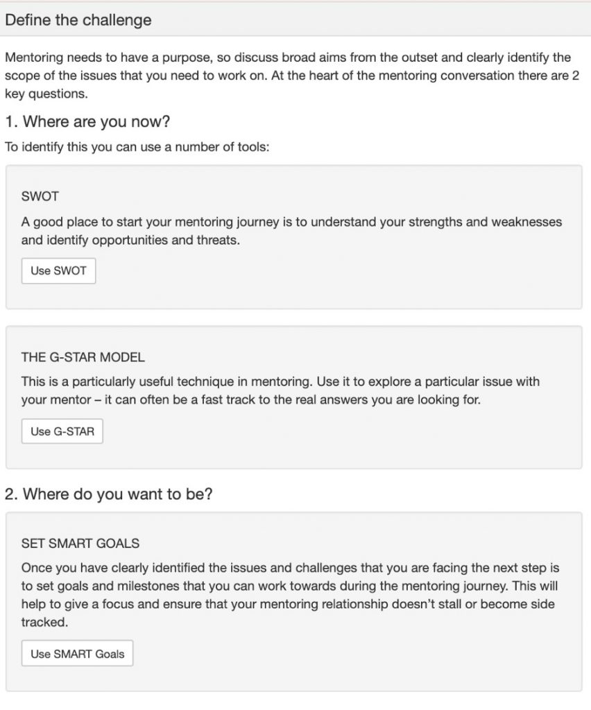 Our mentoring platform will not only enable you to be matched to a mentor who has the skills and experience that you are looking for, it provides a wealth of guides and videos to guide you through every step of the mentoring process.