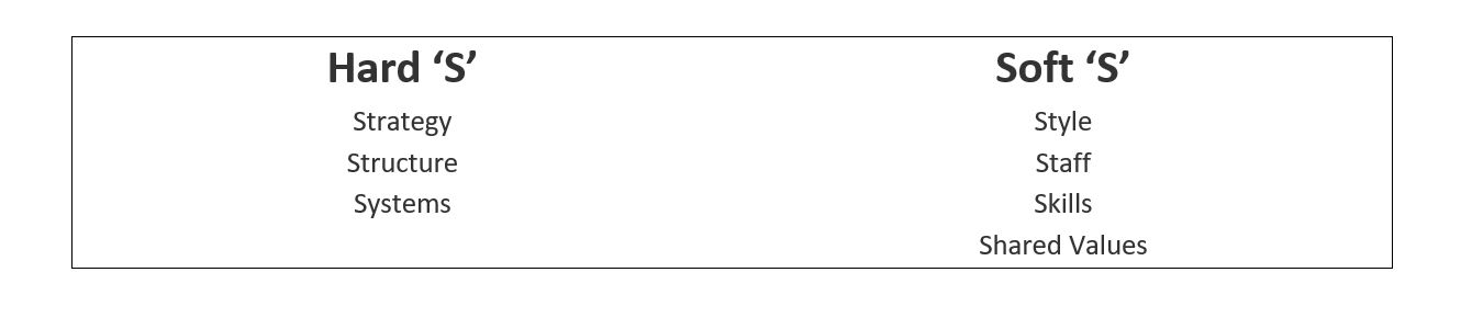 Strategy, structure and systems are hard elements that are much easier to identify and manage when compared to soft elements.