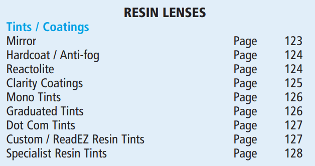 Click on one of the pdf links to view the category of lenses you wish to view.