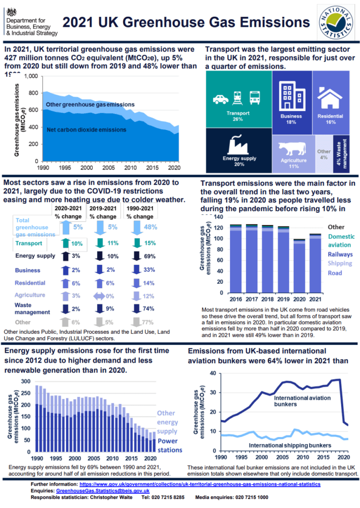 2021 UK Greenhouse Gas Emissions. Further information: www.gov.uk/government/collections/uk-territorial-greenhouse-gas-emissions-national-statistics