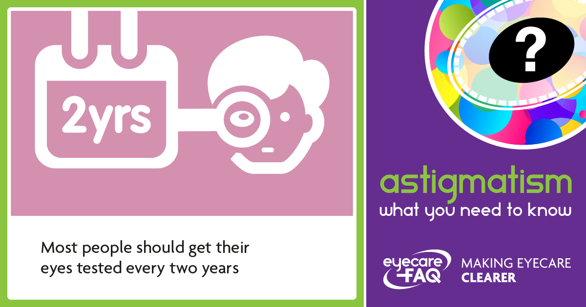 Astigmatism is detected during a routine eye test. Optometrists recommend that most people should get their eyes tested every two years.
