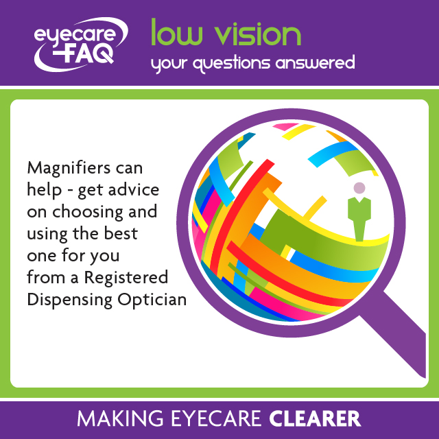 A magnifier makes the things you want to see bigger and usually clearer. Although magnifiers are easier to use and transport than other aids there are many different types of magnifying glass, so you should get advice about which one will help you. There are techniques to learn to make the most out of any magnifier. An optician is trained to advise on low vision and help you learn to use the sight you have.