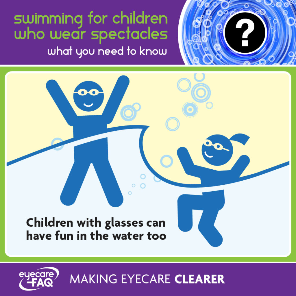 Navigating a pool with poor vision can be scary for a child but there is a solution. If your child normally wear specs, prescription goggles can help. Ready-to-wear prescription goggles, incorporating basic lens powers are available, or your dispensing optician can order goggles with your accurate prescription incorporated. Don’t order goggles online for your child: only registered practitioners are legally allowed to supply specs of any sort to kids. Call in to your local optical practice and ask the registered dispensing optician for more advice on the best goggles to help your child make the most of swimming.