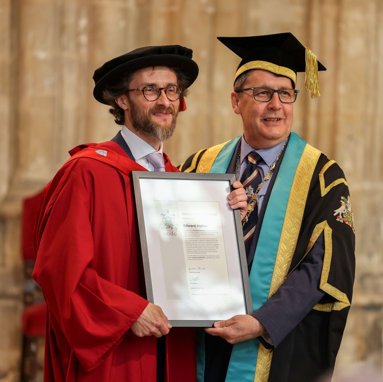 Edward Mallen receives a 2025 Honorary Fellowship from ABDO president, Kevin Gutsell