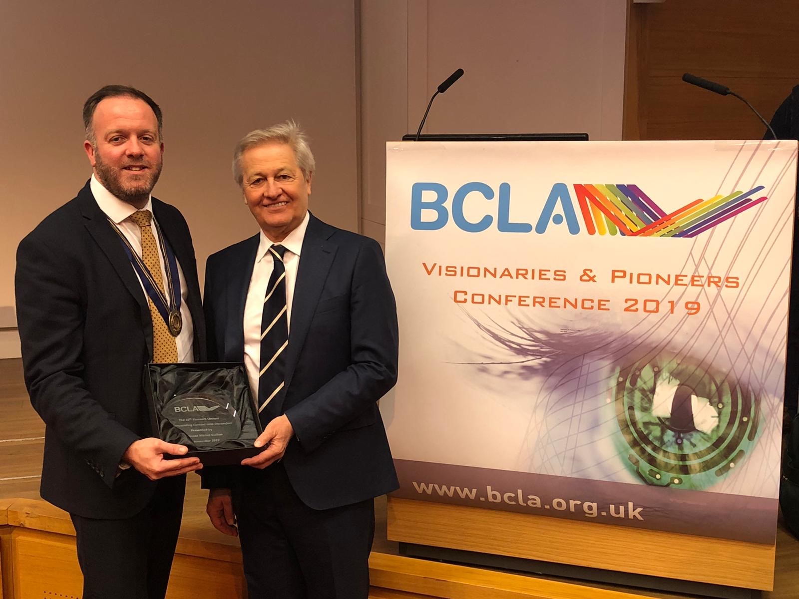 Professor Michel Guillon receives the 2019 Pioneers Award from BCLA president, Jonathon Bench