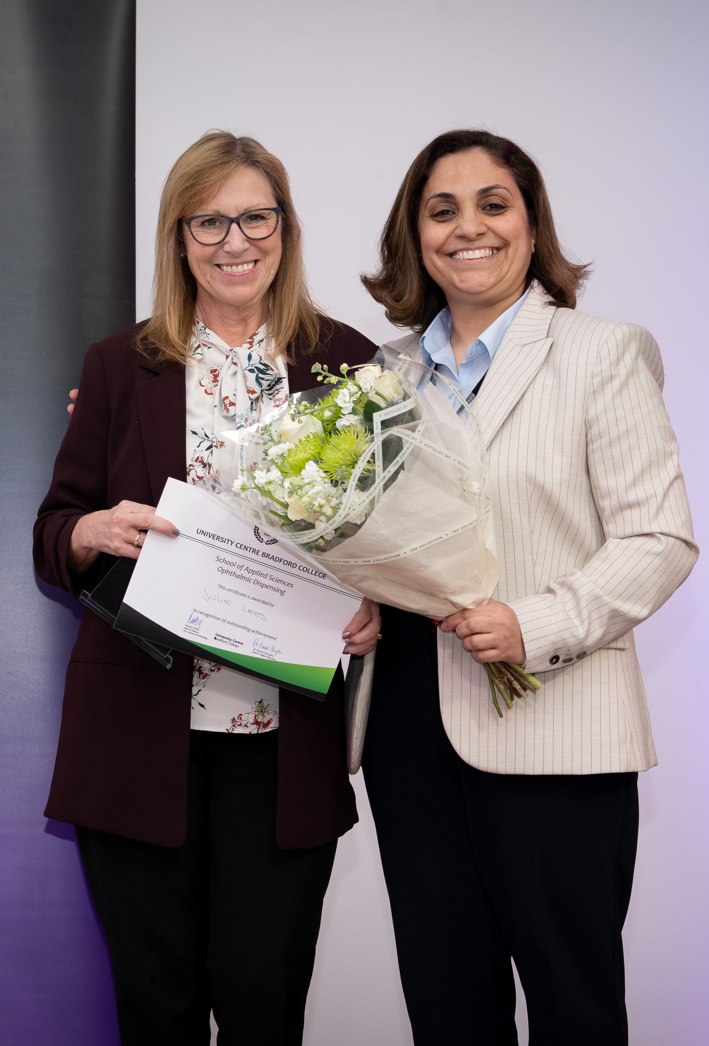 The college also works with many local opticians in the north of England to create practice placement opportunities for the full-time BSc Ophthalmic Dispensing students. During the ceremony, two practice owners were acknowledged for their outstanding support in relation to offering students numerous practice placements over the years. They were Sukhvinder Virdee of I Wear Opticians, and Sukhvir Singh of KS Opticians.