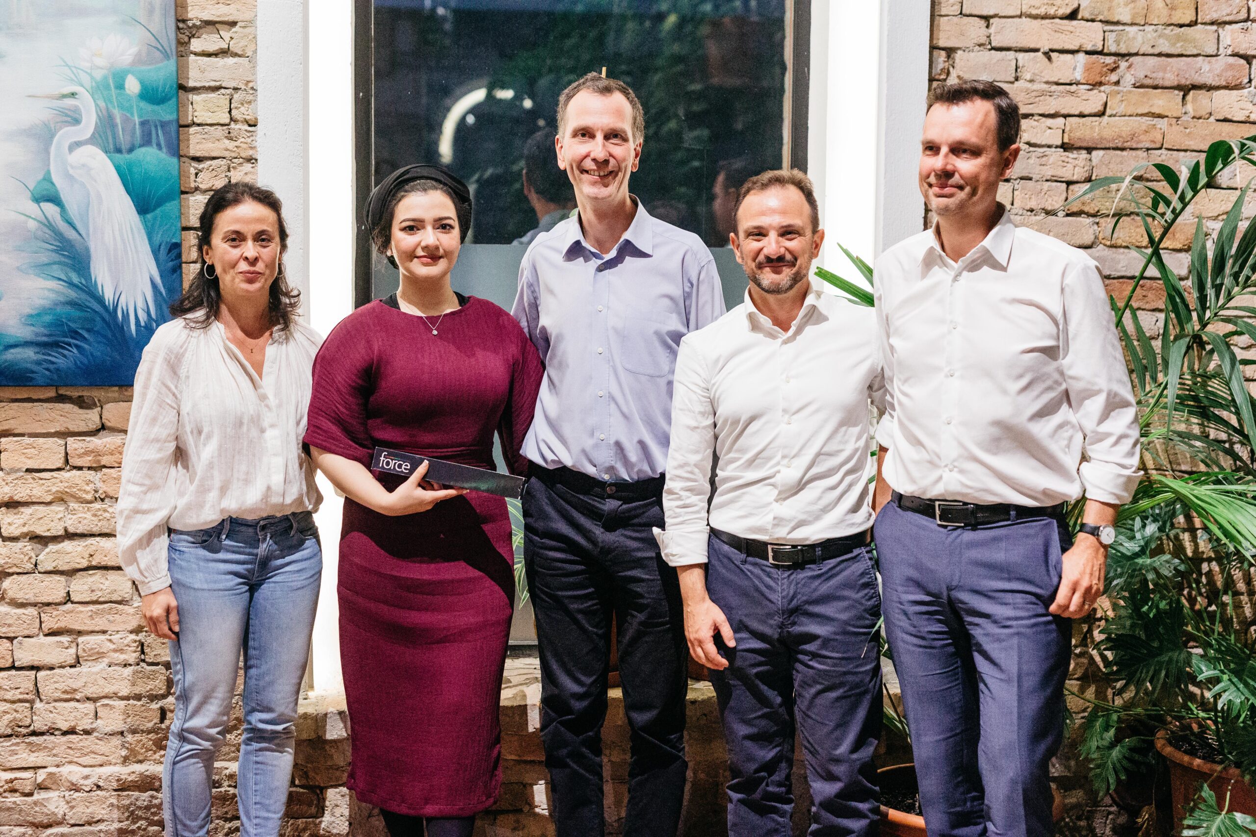 From left: Elena Garcia Rubio, Muskaan Hussain, James Wolffsohn, Fabio Carta and Stefan Bandlitz at the celebration dinner