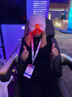 A new learning for me this year was all about low level light therapy (LLLT) for dry eye. Consequently, I found myself at the Topcon stand in the exhibition hall to experience its Eye-Light solution for dry eye therapy; I felt like I was auditioning for a part in a new Hollywood sequel for Phantom of the Opera – but with a fabulous health twist.