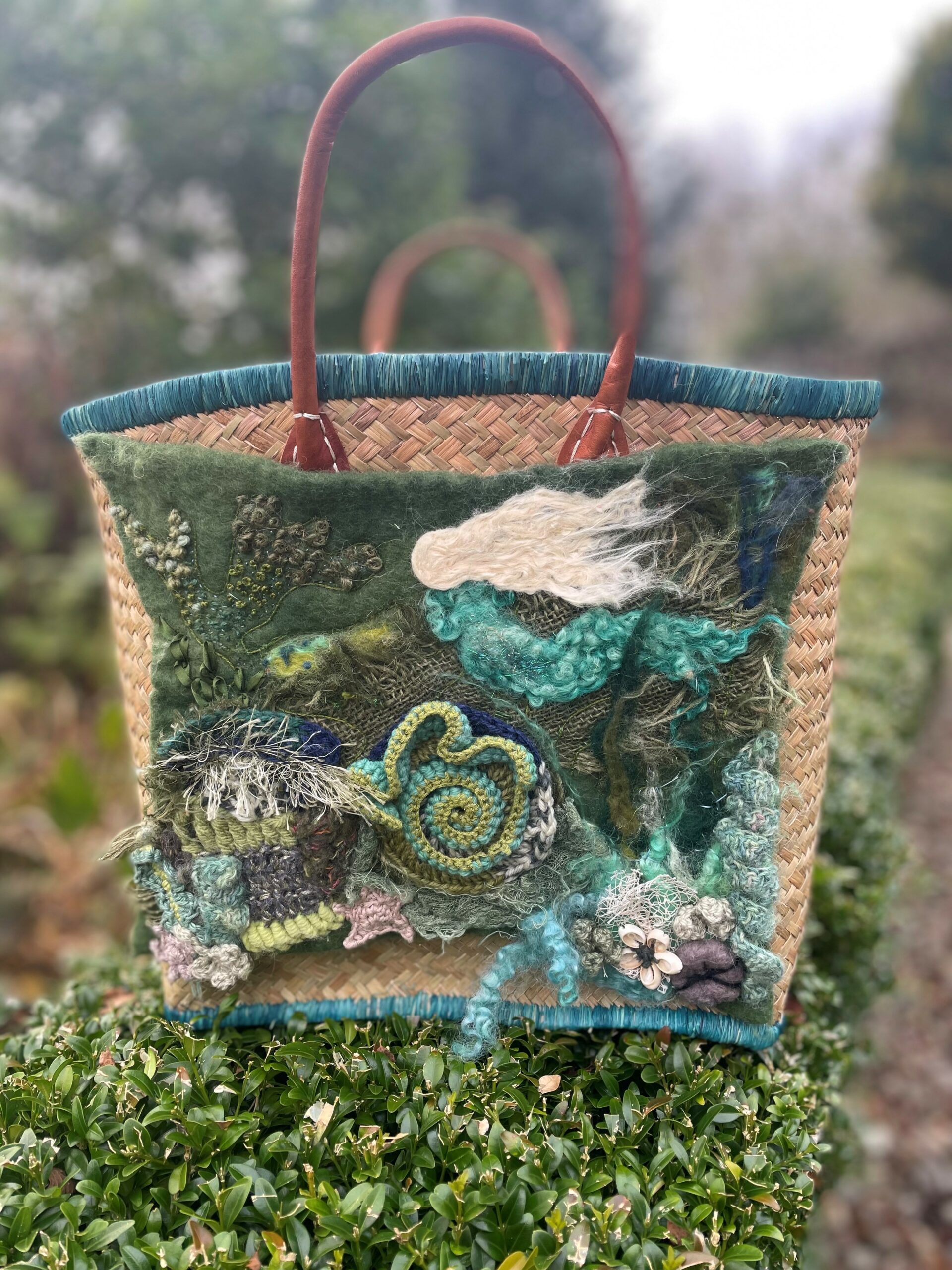 Debbie loves creating new fabrics with yarn. She used yarn from blankets to begin with then began incorporating other media such as wet felting, embroidery, punch needle and rag rugging. She’s current focusing on up-cycling products.