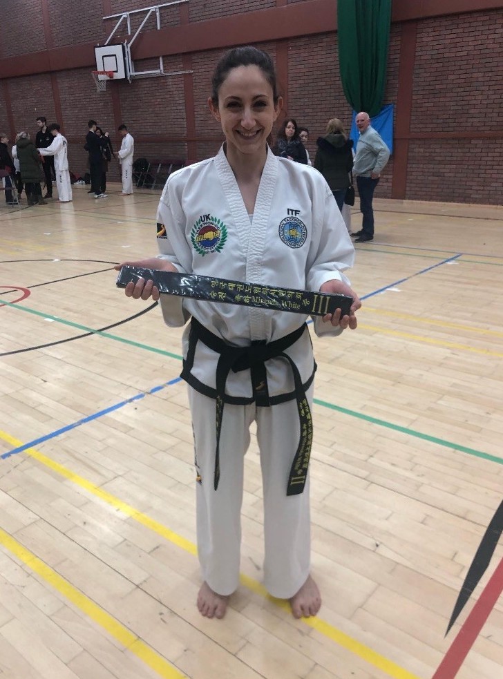 “I wanted to join a martial arts club,” she says. “I’d never heard of Taekwon-Do before, so I decided to join the club. I now have a third degree black belt in Taekwon-Do and have competed internationally for Scotland.”