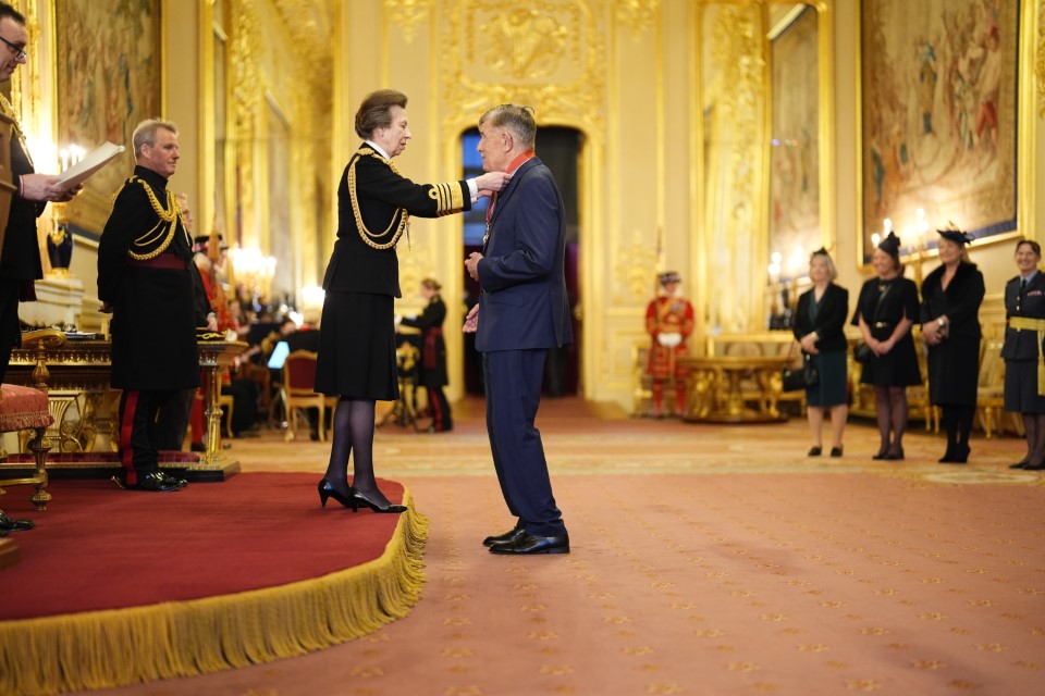 Doug Perkins receives his CBE from the Princess Royal