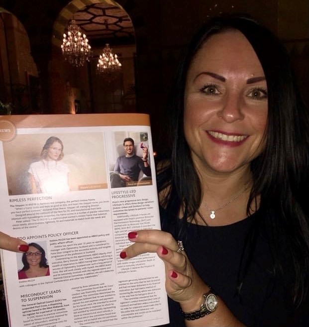Debbie’s first encounter with optics was when she worked as a development officer within Renfrewshire and Inverclyde Primary Care Trust. She recalls: “My role there was to support the delivery of GP, dental, pharmacy and optical services. One of the big projects I worked on during my time there was the roll-out of a new IT system for GPs called GPASS.”
