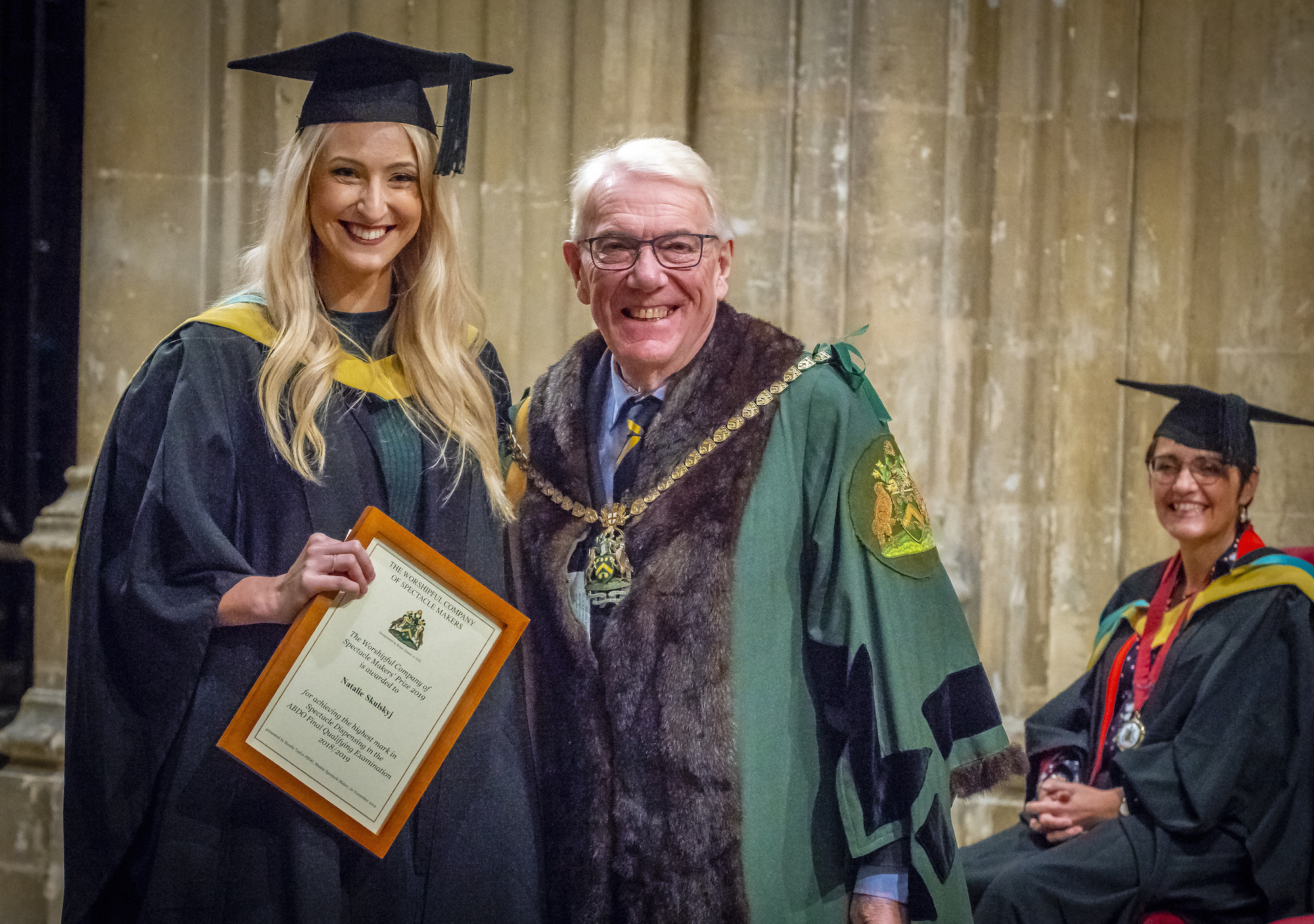 Natalie Skulskyj receives the WCSM Prize form Master, Huntly Taylor