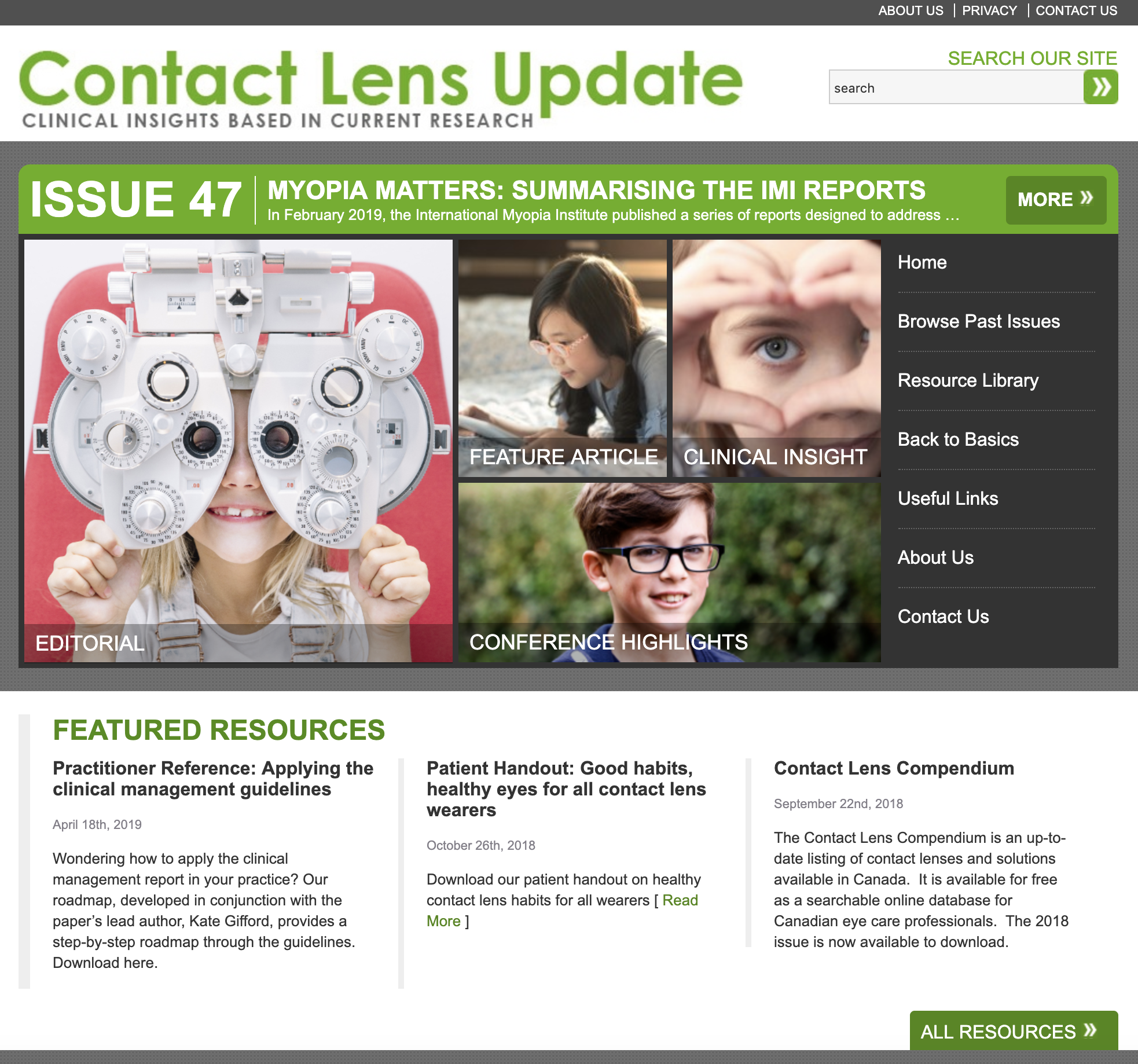 In addition to a complete archive of back issues, ContactLensUpdate.com offers a resource library that provides no-cost professional tools, patient resources, images and video. It also houses complimentary technical training videos produced by International Association of Contact Lens Educators, plus an industry glossary.
