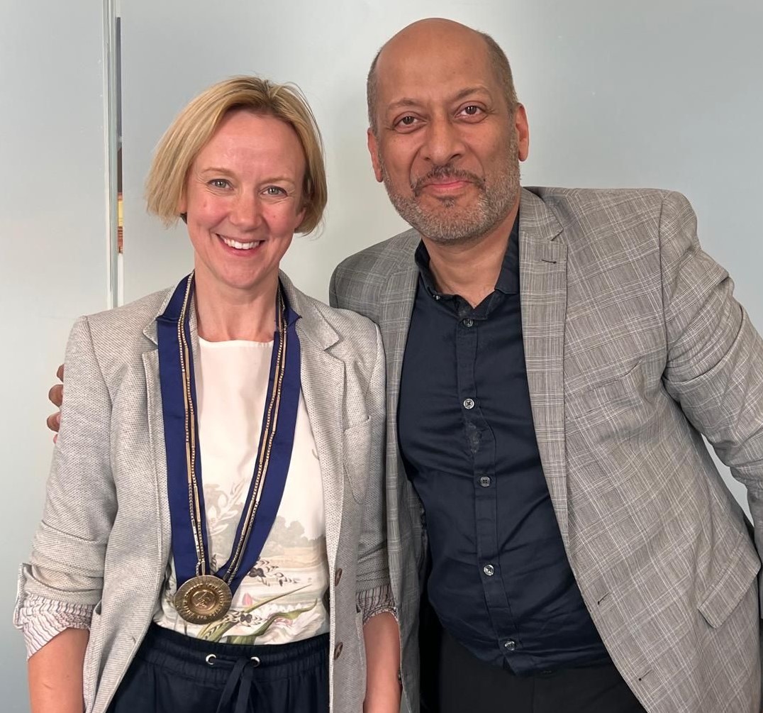 Rakesh Kapoor hands over the BCLA medal of office to Sarah Farrant