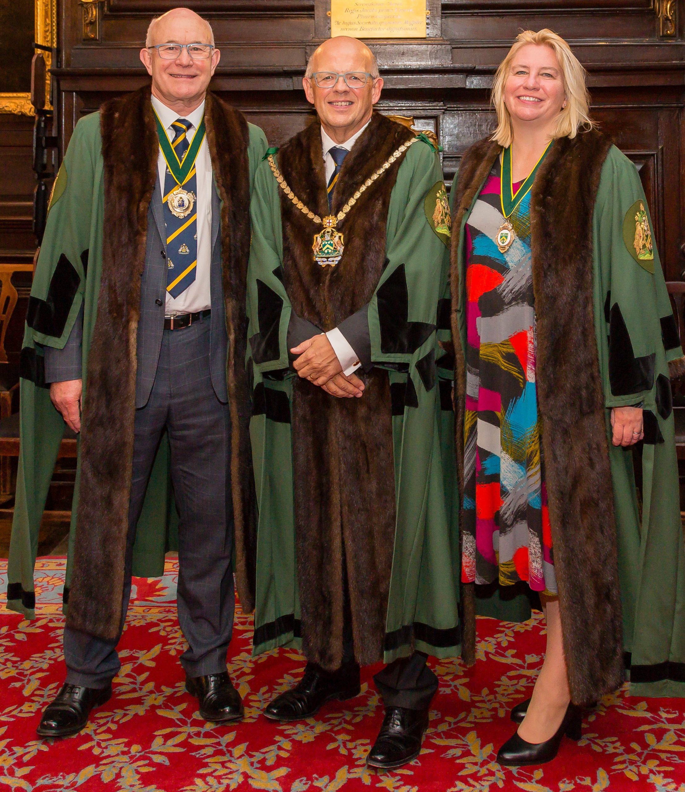 The new Master with Upper Warden, Nigel Haig-Brown, and Renter Warden, Liz Shilling