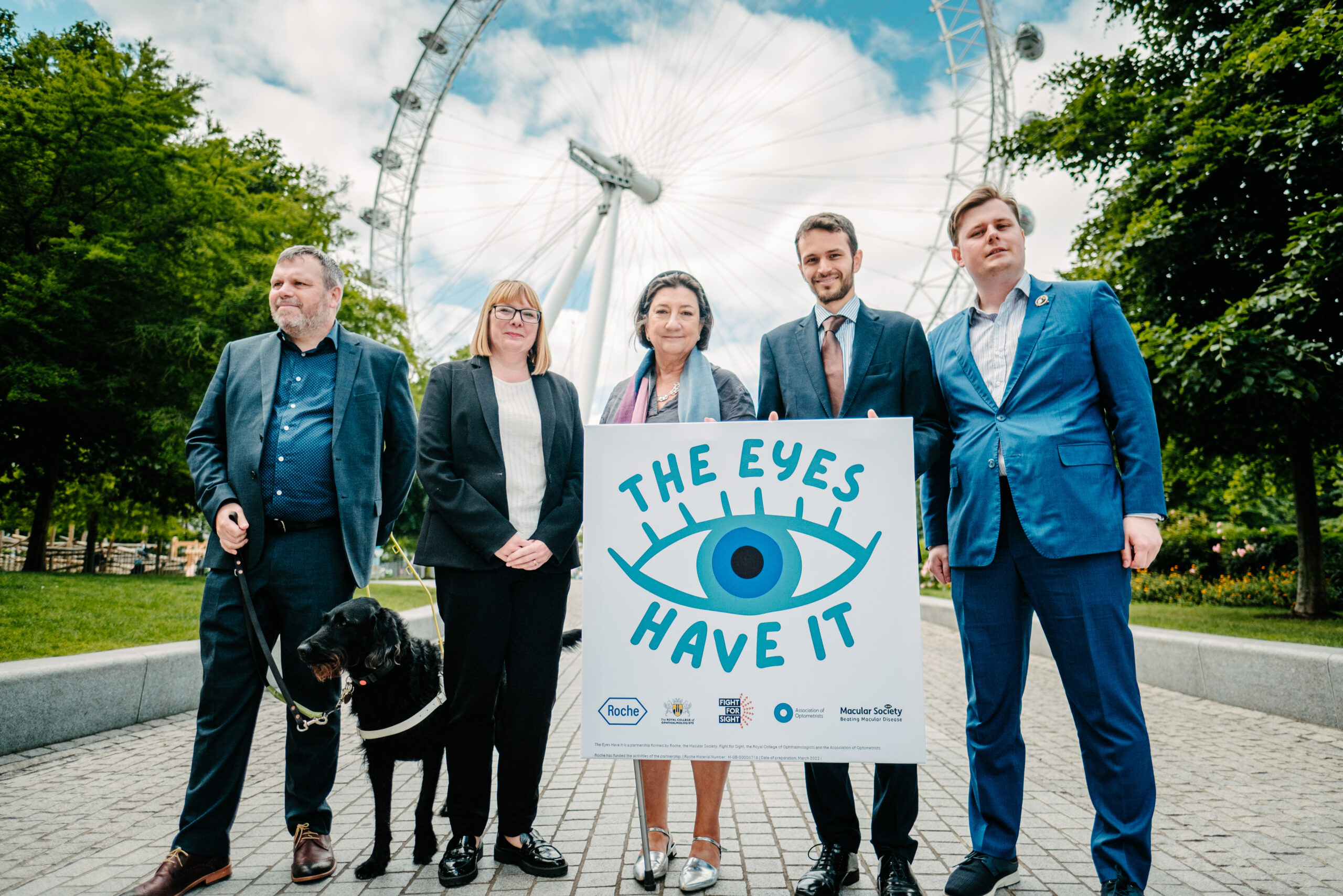Our photograph shows from left: Keith Valentine (CEO, Fight for Sight), Carolyn Ruston (policy director, AOP), Cathy Yelf (chief executive, MS), Jordan Marshall (policy manager, the Royal College of Ophthalmologists), Conn O’Neill (public affairs partner, Roche Products).