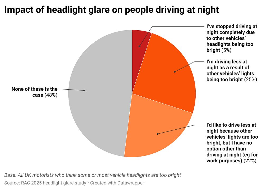 A quarter of drivers who find vehicle headlights too bright are driving less at night as a result, reveals a major new study on headlight glare from the RAC.