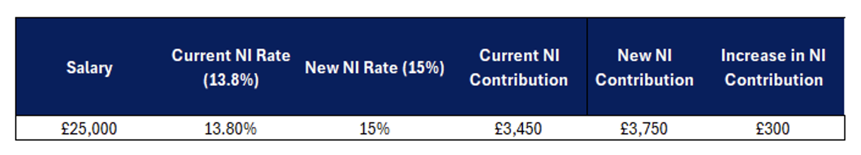 Below we illustrate the impact this has on the business on someone who is being paid £25,000.