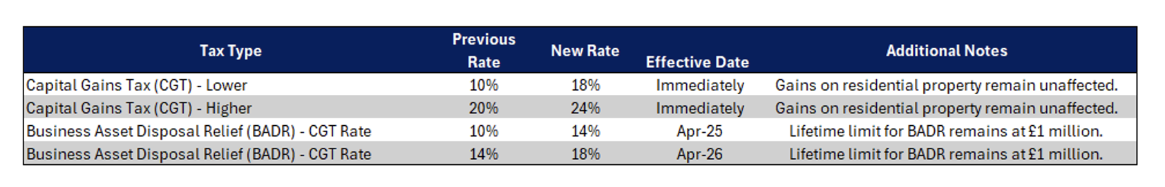 Capital gains taxes have risen across the board, but a key area to note is business asset disposal relief (BADR), previously known as entrepreneur’s relief.